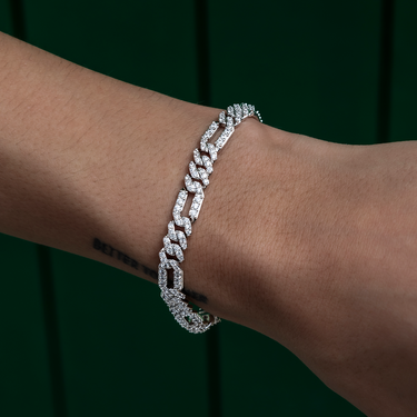 Diamond Figaro Bracelet in White Gold- 6mm