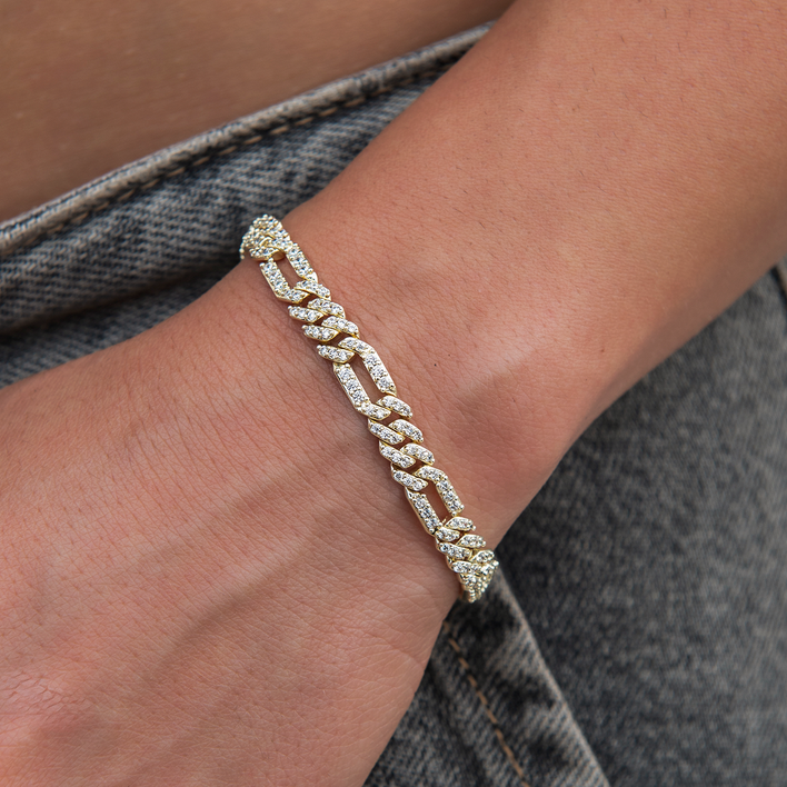 Diamond Figaro Bracelet in Yellow Gold- 6mm