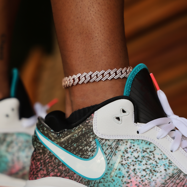 Introducing the Diamond Prong Cuban Anklet in Rose Gold- 12mm, a stand out piece. This exclusive anklet is iced out in hand-set stones and set in 14k Rose Gold- its the perfect drip for upgrading any shoe. Rock it solo or stack it with the Diamond Prong Cuban Anklet- 8.5mm for a layered look!