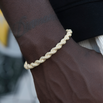 Diamond Rope Cuff Bracelet in Yellow Gold- 6mm