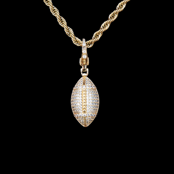 Introducing our Football Clip On Pendant in 18k Yellow Gold. Featuring a football design, this clip on charm pendant is adorned with hand set stones that shimmer brilliantly with every movement. The clip on charm style lets you take control-wear it on one of our compatible chains, bracelets, or anklets to give your look some serious edge. Whether you’re looking to amp up your everyday outfit or make a statement on a night out, this charm pendant is your ticket to turning heads. See below for one of our compatible necklaces, bracelets or anklets.