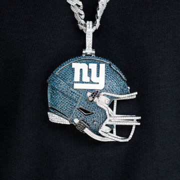 GLD has teamed up with the National Football League to introduce the official NFL Team Giant Helmet Pendants. This made to order Giant Helmet piece was meticulously crafted in 14k White Gold with hand-set stones to accurately depict the helmet of the Giants. Flex this NFL season with this official Giant Helmet pendant of the New York Giants!