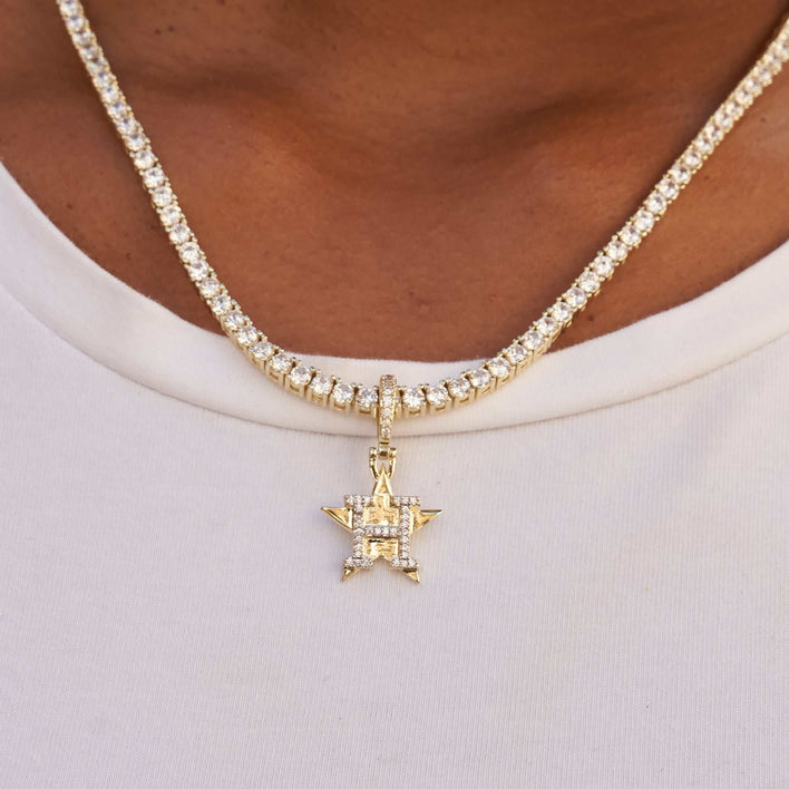 GLD has teamed up with Major League Baseball to introduce official MLB Team Micro Logo Pendants. Finished in 18k Gold plating, this piece was meticulously crafted with clear CZ stones to accurately depict the logo of the Houston Astros. Celebrate this season with the official logo pendant of the Astros today!