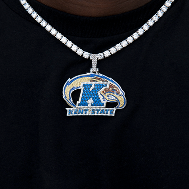 GLD has teamed up with the National Collegiate Athletic Association to introduce the official NCAA Team Pendants. This piece was meticulously crafted with blue and yellow hand-set stones and blue enamel to accurately depict the logo of the Kent State University football team. Flex this season with the official pendant of the Golden Flashes!