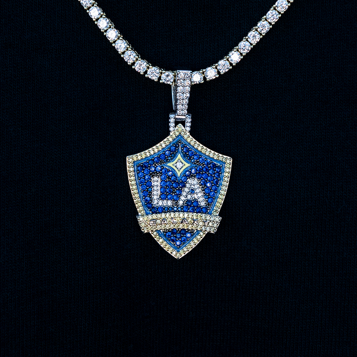 GLD has teamed up with Major League Soccer to introduce the official LA Galaxy Logo Pendant. This 14k White Gold piece was meticulously crafted with hand set stone details to celebrate the logo of the LA Galaxy. Rep your Los Angeles team with this exclusive pendant and pair it with a 4mm Rope Chain for the perfect set!