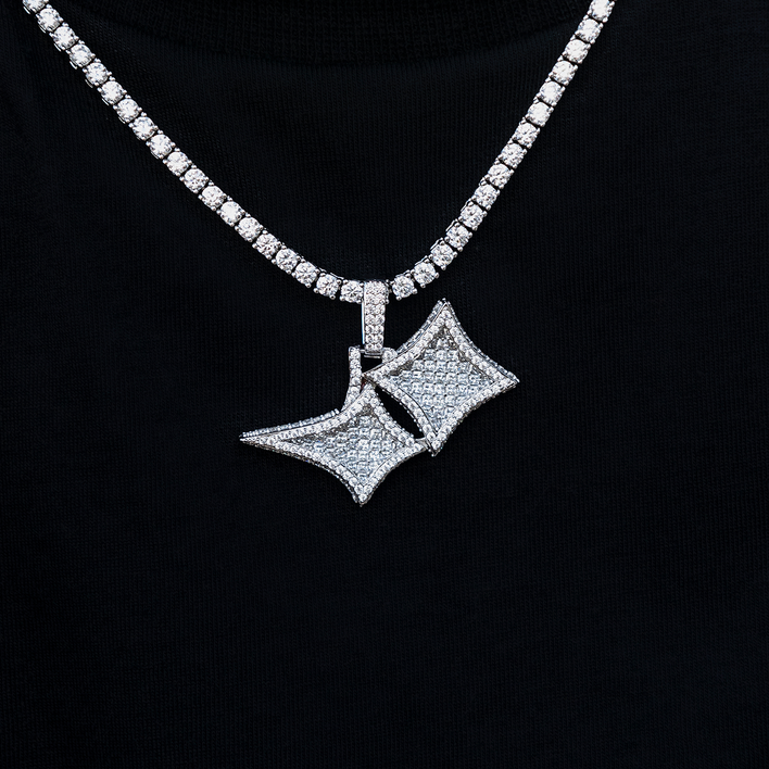 Introducing the GLD Star Pendant in White Gold. By rockin' this exclusive piece, you will become an official member of the GLD family. This 14k White Gold pendant was created to express our gratitude for the one and only GLD Gang. Show your love with an iced out GLD pendant featuring our signature stars. Rock it with our 5mm Tennis Chain for the perfect pair!