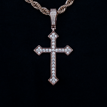 Representing knowledge, strength and compassion, let the Large Iced Celtic Cross Pendant in 14k Rose Gold do the talking. Iced out in hand-set stones, this piece is sure to accentuate your fit. Pair it with a Diamond Tennis Chain for the perfect drip!