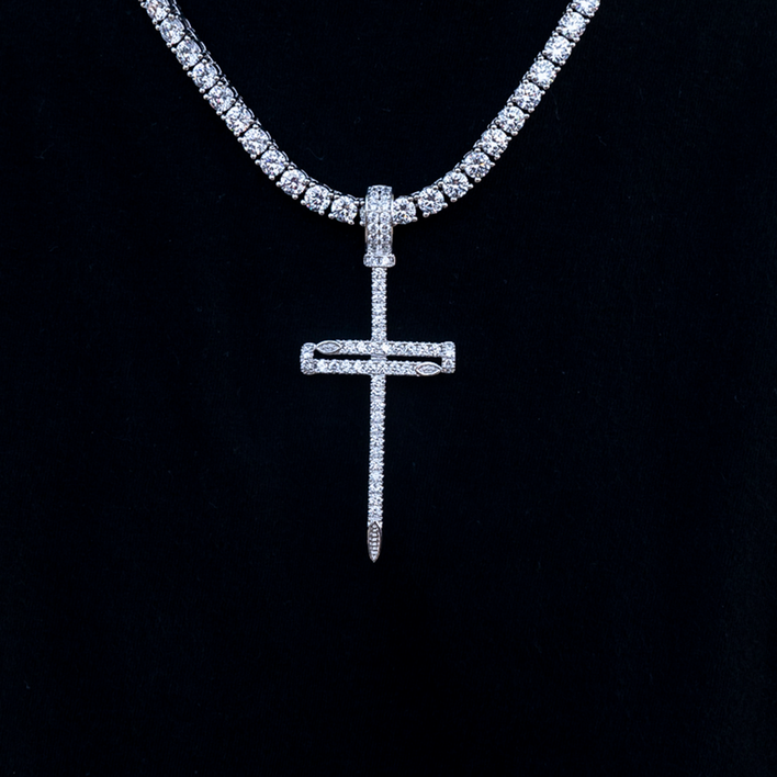 The Large Nail Cross Pendant, also known as "The Cross of Suffering," is detailed with larger hand-set stones, intricately hand-placed to give the pendant a shine that will stand out from the crowd.