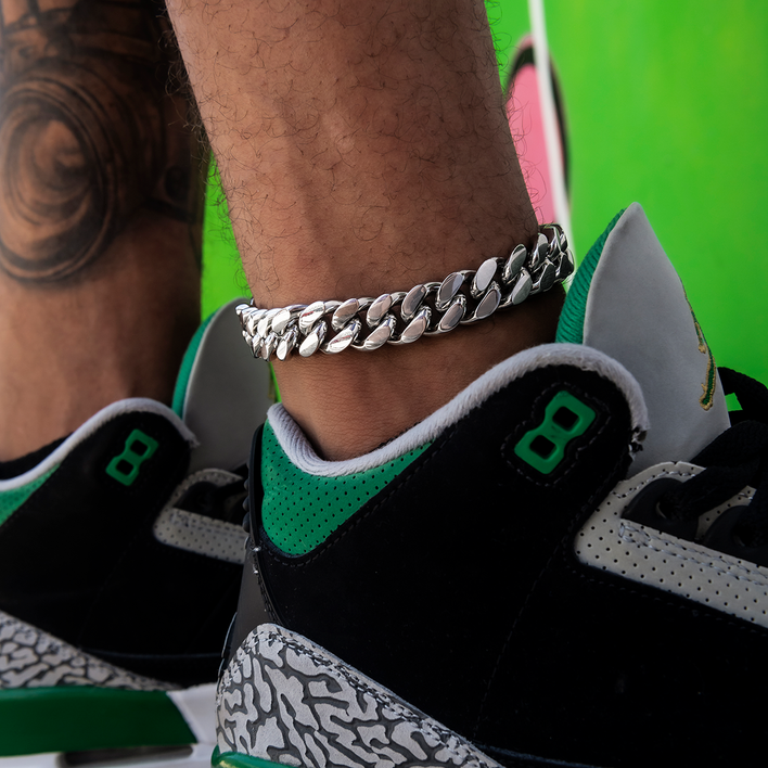 Miami Cuban Anklet in White Gold- 15mm