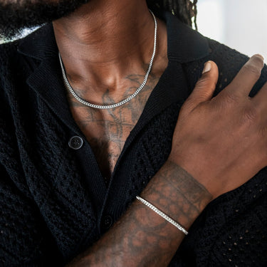 Micro Cuban Chain + Bracelet in White Gold- 3mm