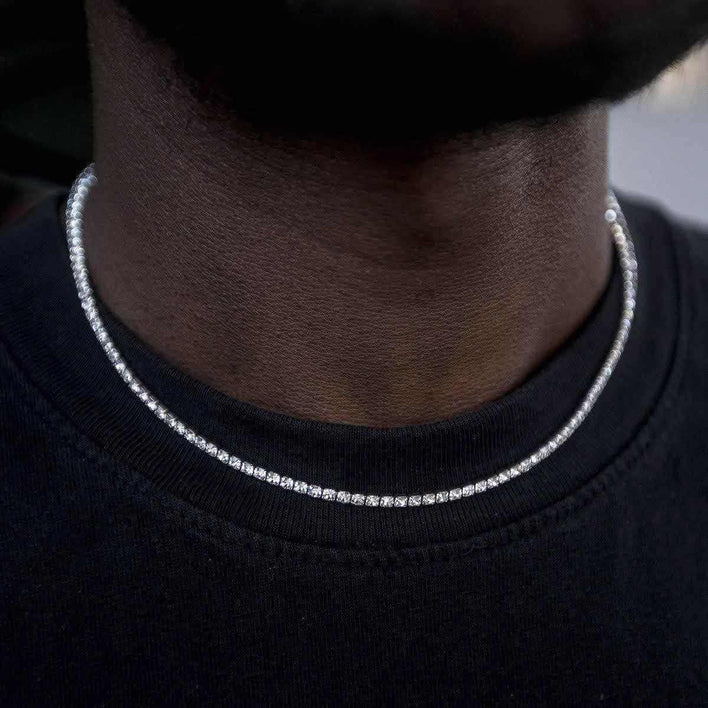 We're changing the game by introducing our newest Micro Tennis Chains with even smaller stones. This original white gold polish over stainless steel piece can be worn independently as a single strand, paired as a double strand, and even paired with our bestselling pendants. You won't find 'em anywhere else.