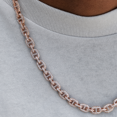 Introducing the Micro Valentina Chain in Rose Gold, these connected valentina links are fully iced in pave hand-set stones, designed to catch the light from every direction. Pair this 14k Rose Gold chain with the matching Micro Valentina Bracelet for the perfect set.