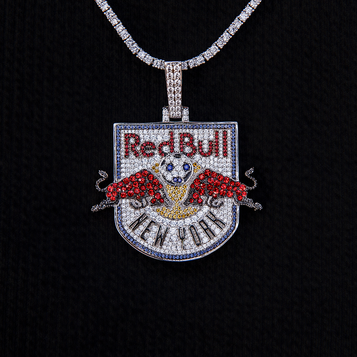 GLD has teamed up with Major League Soccer to introduce the official New York Red Bulls Pendant. This 14k White Gold piece was meticulously crafted with hand set stones to celebrate the team. Rep the Red Bulls with this exclusive pendant, made to stand out with pride!