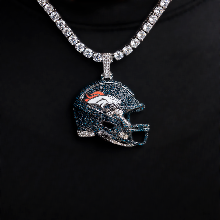 GLD has teamed up with the National Football League to introduce the official 2025 NFL Team Helmet Pendants. This piece was meticulously crafted with navy hand-set stones and orange/white enamel to accurately depict the helmets of the Broncos. Flex this NFL season with the official pendant of the Denver Broncos!