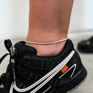 Introducing the Palm Chain Anklet- the 2mm version. Crafted in 14k White Gold, this anklet features a braided rope design that will instantly level up your look. Ideal for stacking and accessorizing any shoe, wear this piece from day to night. Pair it with the Palm Chain and Bracelet in 2mm for the entire matching set!