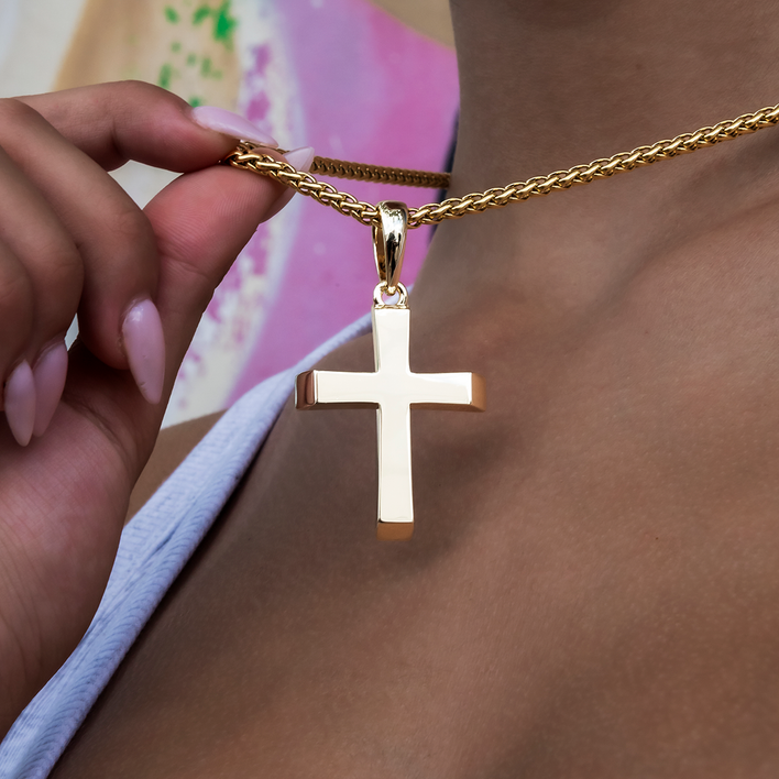 Introducing the Simple Cross Pendant in 18k Yellow Gold. We made a larger version of your favorite micro cross that is simple, easy to style, and great for everyday wear. Pair it with our Palm Chain in Yellow Gold to create a stunning set that you can rock year round.
