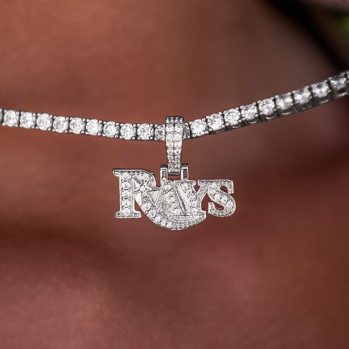 GLD has teamed up with Major League Baseball to introduce the official MLB Team Micro Pendants. Finished in 14k White Gold, this piece was meticulously crafted with hand-set stones to accurately depict the logo of the Tampa Bay Rays. Rep your squad with the official micro logo pendant of the Rays!